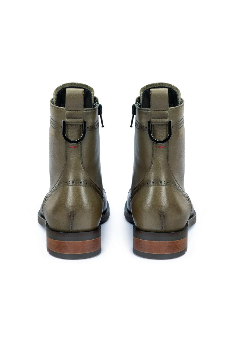 Las botas LLOYD, fabricadas en piel lisa verde, presentan un diseño deportivo. Su ajuste seguro con cordones es una garantía. La suela de goma flexible amortigua el impacto al caminar, mientras que el cuero de la plantilla interior proporciona una óptima regulación térmica. Gracias a su tacón bajo y cuadrado, ofrecen una pisada segura y un uso cómodo a diario. El cierre de cremallera y la suave parte superior de piel lisa garantizan una apariencia clásica y elegante, además de un abrochado fácil y rápido. Gracias al forro de piel y tela, son cómodas y transpirables.