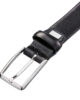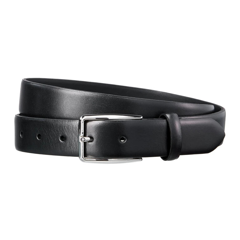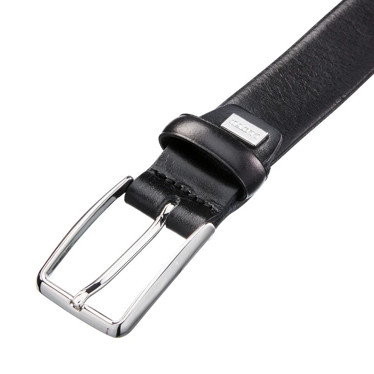 Pura elegancia en un diseño sencillo: este cinturón de alta calidad en piel de vaca negra está acentuado por una hebilla plateada y completa cualquier look.