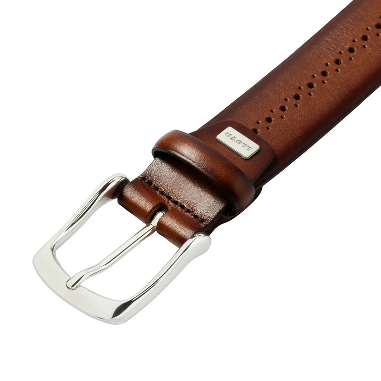 Cinturón de cuero elegante: los detalles especiales son la moderna perforación Lyra y el acabado noble del borde.
