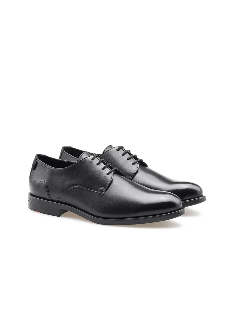 Descubra el EEZY 117G de LLOYD, un elegante zapato derby con cordones que combina elegancia y comodidad. La suave parte superior de cuero negro le da a este zapato un aspecto clásico, ideal para ocasiones de negocios. La punta redonda le da un toque moderno. En el interior, la combinación de un 60 % de cuero y un 40 % de forro textil proporciona una sensación de confort. Gracias a la plantilla extraíble, fabricada con material sintético de alta calidad, puede ajustar la comodidad individualmente. La robusta suela de goma garantiza durabilidad. El EEZY 117G es la elección perfecta para el caballero que cuida la moda y valora la calidad y el estilo.