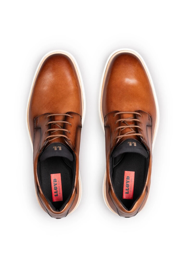 El zapato con cordones GORDON de la colección LLOYD combina elementos de diseño elegantes con características funcionales. Fabricado en piel lisa y textil de alta calidad, este derby ofrece una atractiva paleta de colores marrones que permite múltiples combinaciones. El forro (60 % piel y 40 % textil) garantiza una gran comodidad. Con plantilla extraíble, el zapato se adapta a las necesidades individuales y ofrece la posibilidad de personalizarlo. La punta redonda le confiere al modelo una elegancia atemporal, mientras que la suela de goma garantiza una pisada cómoda. El GORDON es ideal para el ocio y realza cualquier look. Este zapato es una excelente opción, especialmente para hombres que valoran el estilo y la funcionalidad.
