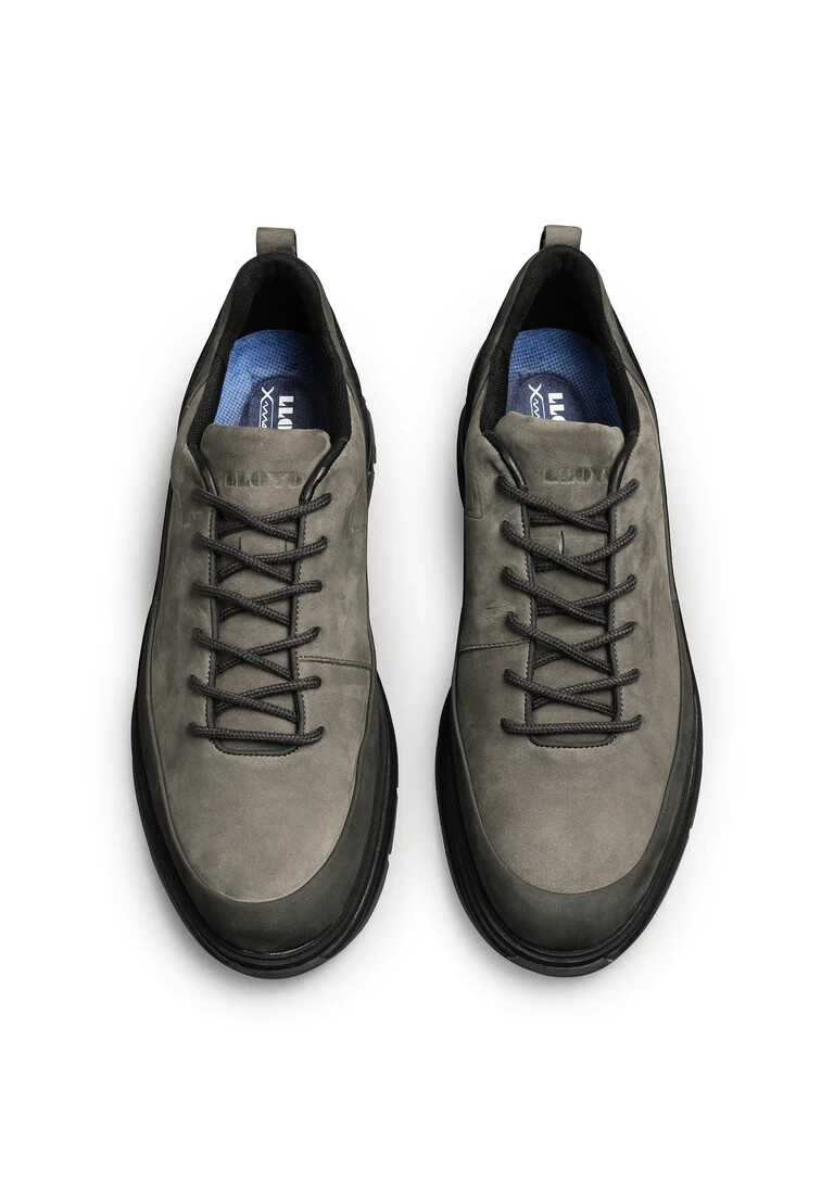 LLOYD presenta estas zapatillas: confeccionadas en piel rugosa gris, cuentan con una parte superior de fácil cuidado. Son ideales para un look casual. Su suela de goma resistente al desgaste amortigua perfectamente el impacto al caminar. La parte superior y los cordones de suave piel rugosa garantizan un aspecto original y de alta calidad, además de un agarre firme y seguro. Gracias al forro textil, estas zapatillas son cómodas y acogedoras. El modelo cuenta con una plantilla Variofootbed, ideal para usar plantillas gracias a su plantilla extraíble.