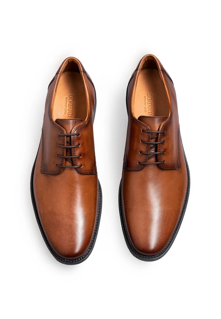 Destaca con los zapatos derby LLOYD “NEVIO”, fabricados en piel lisa marrón y con un diseño moderno. Estos zapatos derby son perfectos para un look clásico y elegante. Su suela de goma flexible amortigua el impacto al caminar, mientras que el cuero de la plantilla interior ofrece una óptima regulación térmica. La parte superior y los cordones de piel lisa y suave garantizan un look clásico y elegante, además de un agarre firme y seguro. Estos zapatos con cordones para hombre son cómodos y transpirables gracias a su forro de piel y tela.