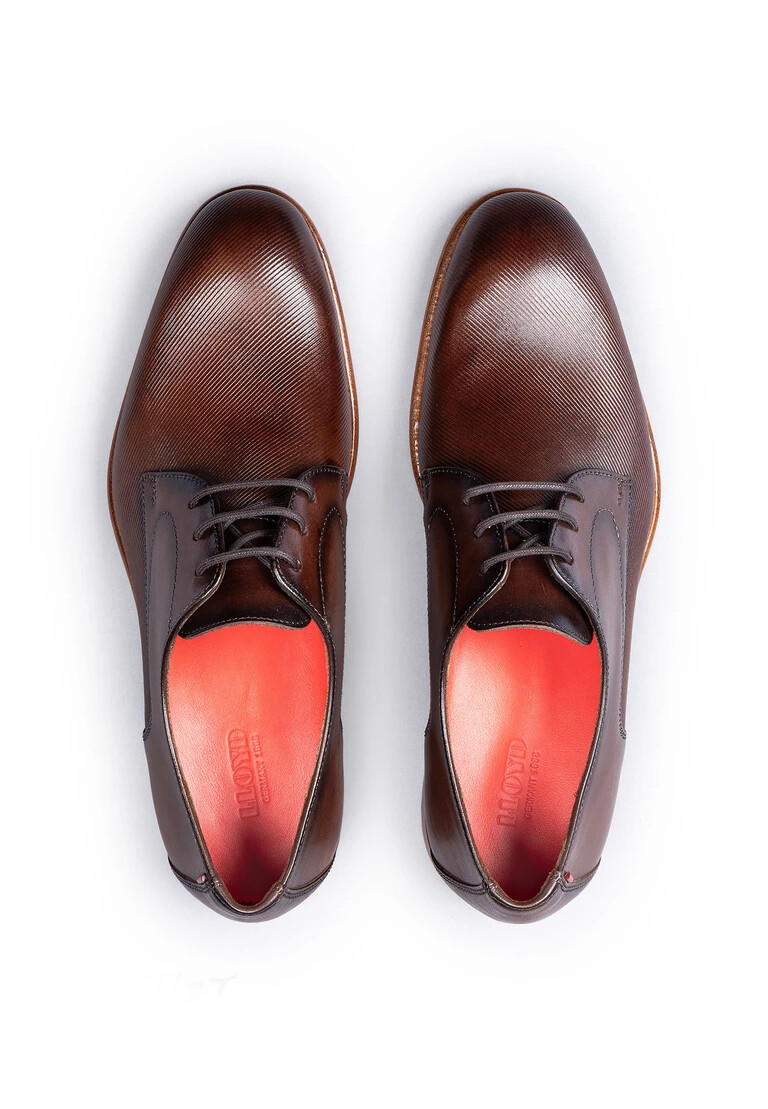 El zapato derby RANDALL para hombre, en un elegante marrón, combina clásicos atemporales con un estilo moderno y chic. Fabricado en piel lisa de alta calidad y con relieve, ofrece un look atractivo, ideal tanto para ocasiones de negocios como para eventos festivos. La punta redonda le da al modelo una silueta armoniosa, mientras que el clásico sistema de cordones garantiza un ajuste perfecto. Con suela de piel y goma, combina comodidad con un diseño elegante. El forro 100% piel redondea el look y garantiza una sensación agradable. El RANDALL es una opción elegante que no puede faltar en el armario masculino.