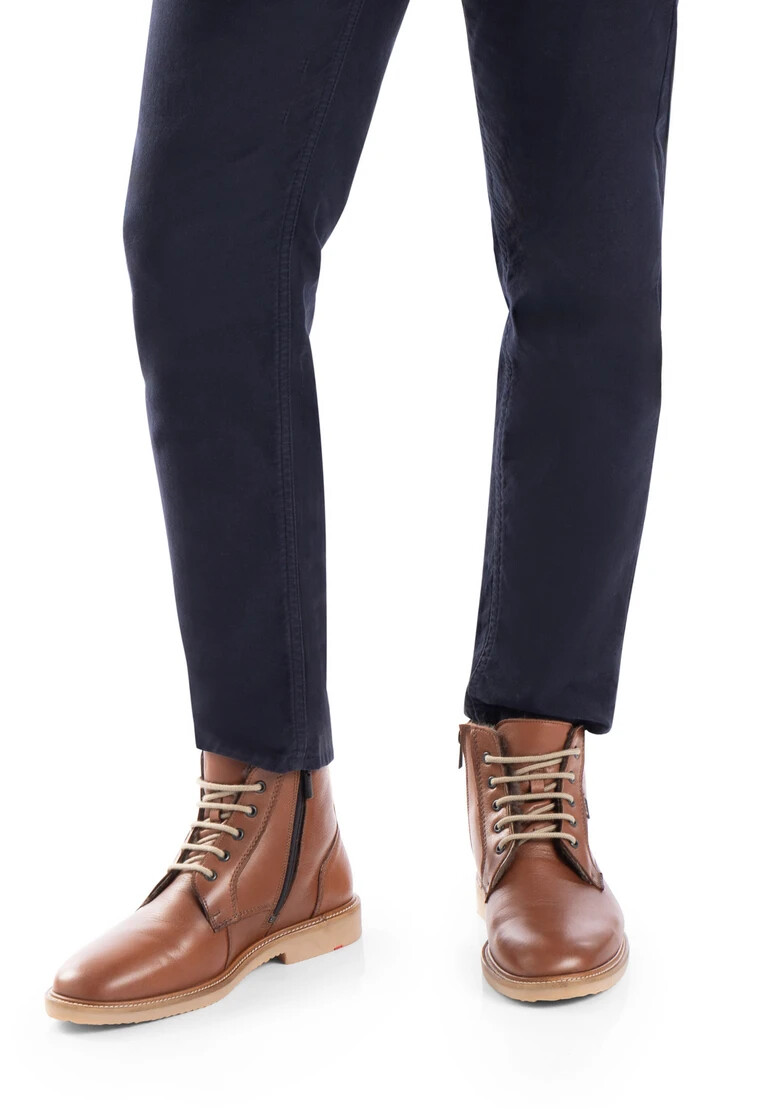 La bota LLOYD de piel marrón impresiona por su membrana GORE-TEX, impermeable y transpirable, en cualquier condición climática. El botín se ajusta firmemente gracias a los cordones. La suela de goma resistente a la abrasión proporciona una amortiguación ideal al caminar. La suela interior de piel de cordero también proporciona un interior cálido. Con su tacón plano y cuadrado, la bota ofrece una postura segura y es ideal para el día a día. La cremallera y la resistente piel granulada garantizan un aspecto personalizado y de alta calidad, además de un fácil cierre. El botín forrado de piel de cordero regula la temperatura y mantiene los pies calientes incluso en los días más fríos.