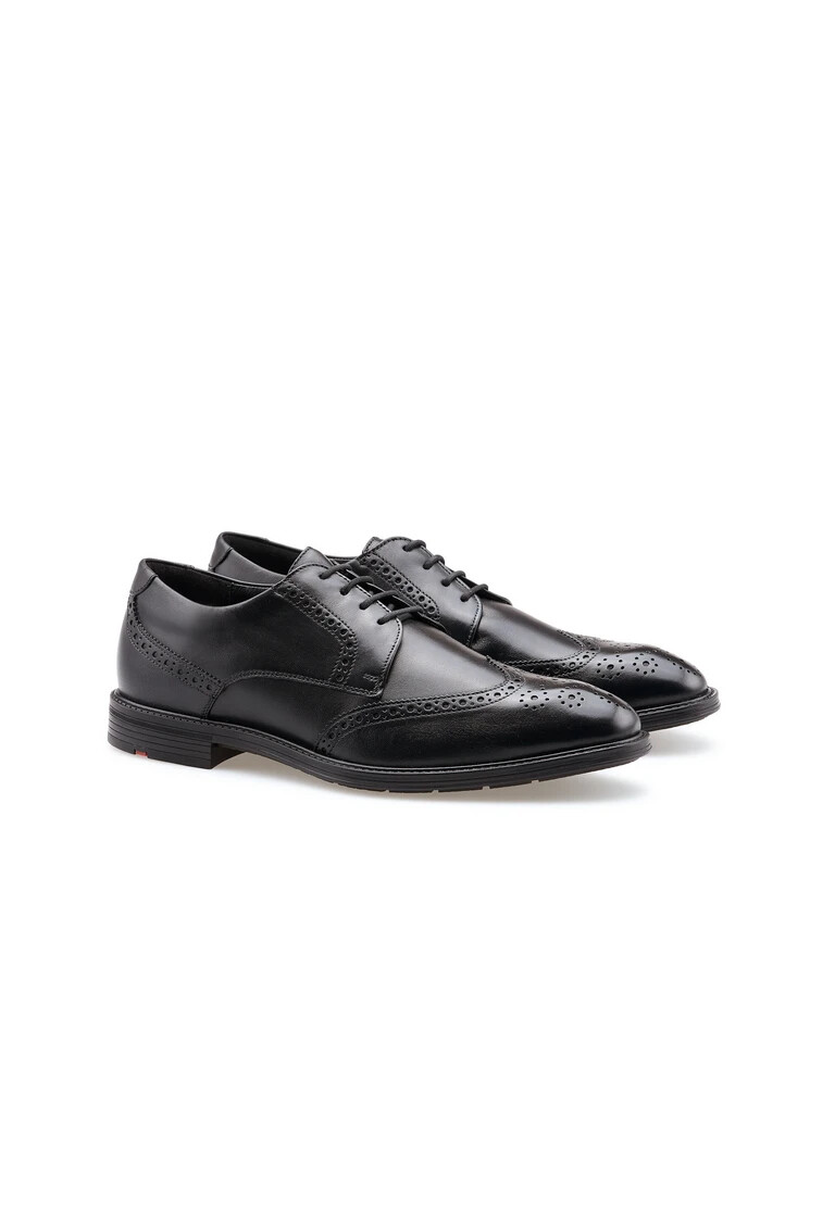 Descubra la elegancia del LLOYD X-MOTION 140W, una obra maestra del calzado especialmente diseñada para hombre. Este zapato combina el clásico diseño brogue con la modernidad de un derby y se caracteriza por su sofisticado sistema de cordones. La parte superior de cuero liso negro brillante ofrece un look elegante, perfecto para ocasiones de negocios o eventos festivos. Una robusta suela de goma y un forro interior íntegramente de cuero garantizan un alto nivel de comodidad. La característica especial de este modelo es la plantilla Vario extraíble, que ofrece flexibilidad en el ajuste. La punta redonda le confiere una forma clásica. El LLOYD X-MOTION 140W no solo es sinónimo de estilo, sino también de una opción elegante para el hombre moderno.