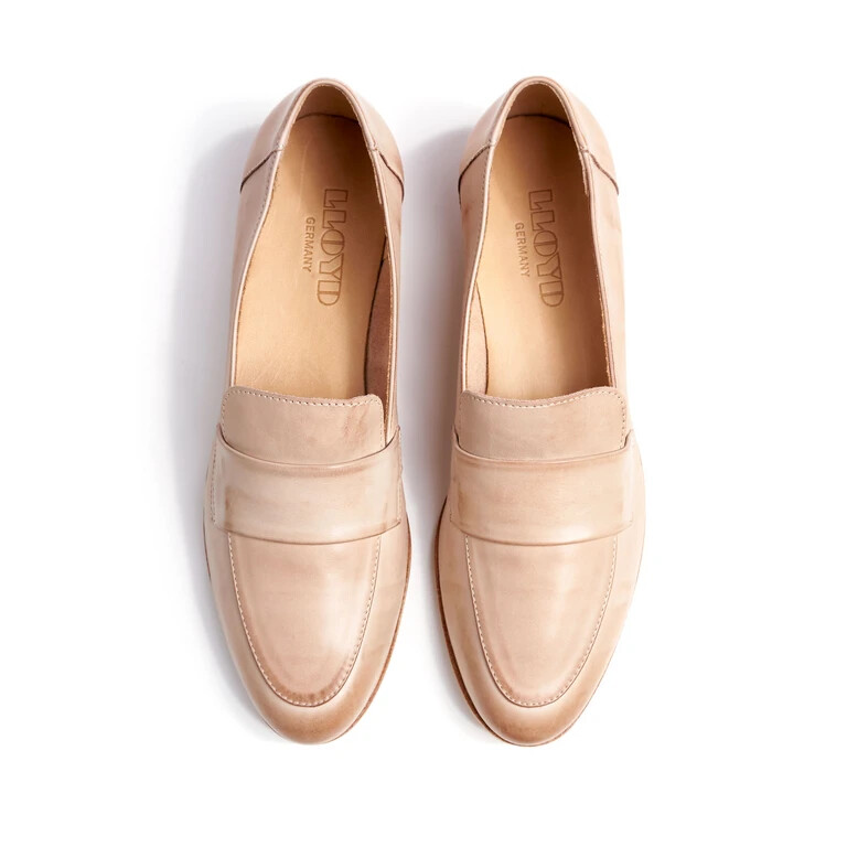 Estos zapatos garantizan un manejo sencillo con solo ponérselos. Su suela adaptable de cuero y goma amortigua el impacto al caminar, lo que permite un uso prolongado. Además, el forro de cuero de la plantilla proporciona una buena regulación térmica. La clásica punta de almendra hace que los pies parezcan más estrechos. Incluso en los días más cálidos, estos zapatos sin forro se pueden usar fácilmente sin calcetines gracias a su ventilación.