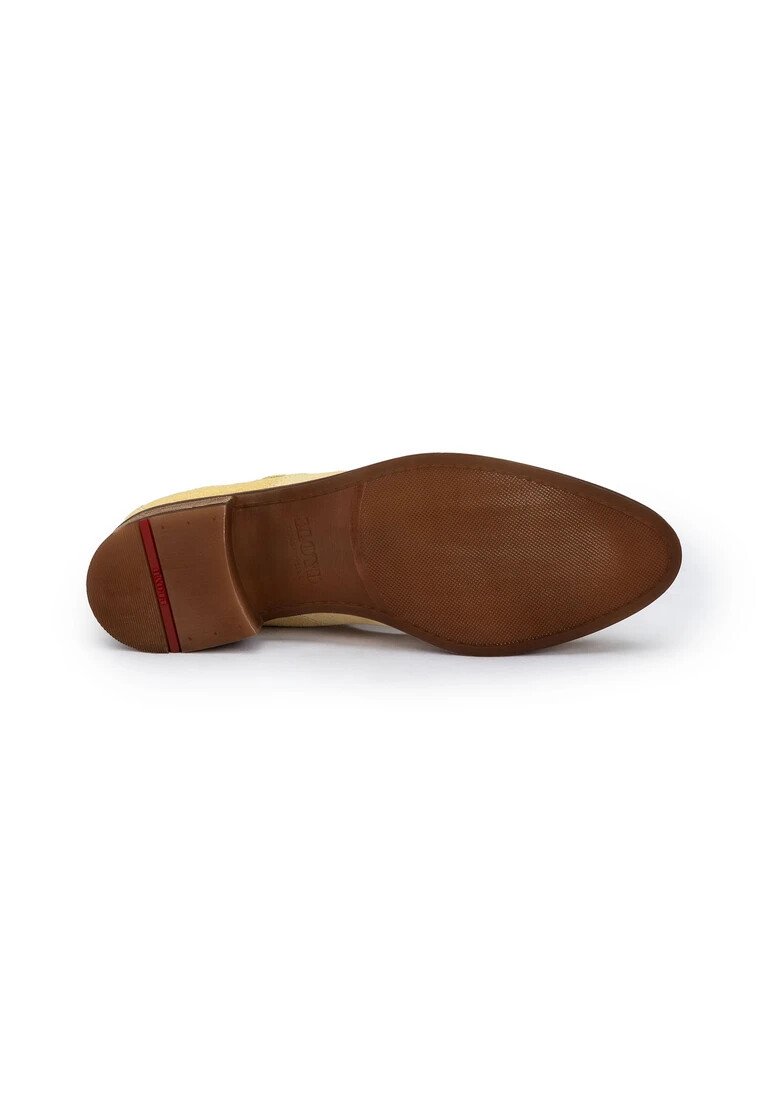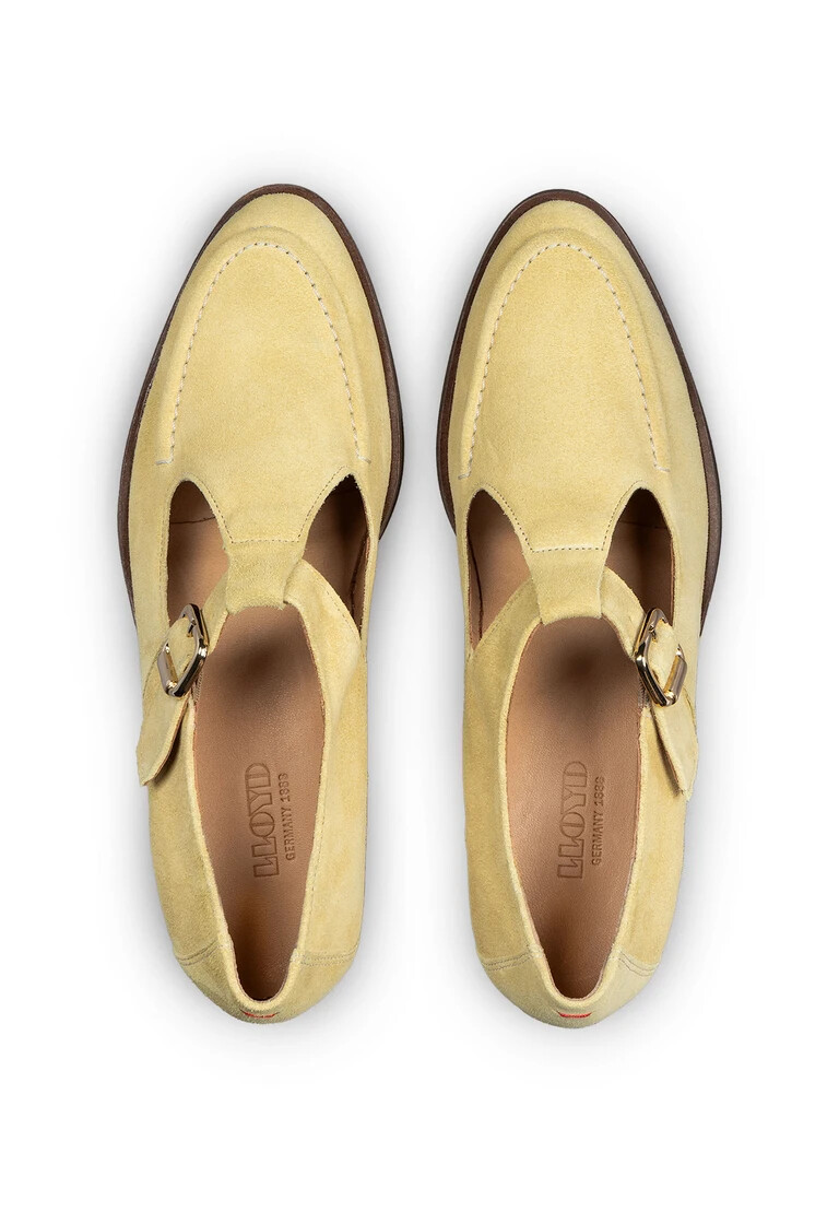 La LLOYD SLIPPER combina un diseño elegante con una confección de alta calidad y es la opción perfecta para ocasiones festivas. La parte superior de ante fino en un vibrante amarillo le da un toque contemporáneo, mientras que la punta redonda y la elegante hebilla realzan su elegante aspecto. El forro es 100 % cuero y garantiza un ajuste cómodo. Con su suela de goma y su robusta construcción, la LLOYD SLIPPER es elegante y funcional. Como un clásico zapato monk, este modelo está dirigido a la mujer que cuida la moda y valora la calidad y el diseño atemporal. Disfrute de la combinación de lujo y versatilidad que le ofrece la LLOYD SLIPPER.