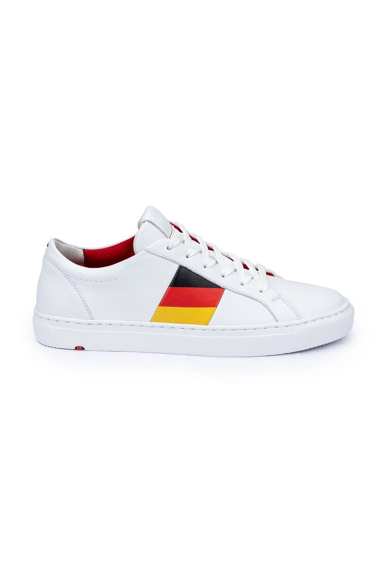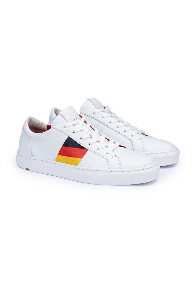 Nuestras exclusivas zapatillas blancas con la bandera alemana en el lateral son el accesorio perfecto para todos los aficionados al fútbol durante la Eurocopa 2024. Fabricadas por la reconocida marca LLOYD, estas zapatillas representan calidad y estilo de primera clase. Con una parte superior de cuero liso de alta calidad y un sistema de cordones clásico, no solo ofrecen comodidad, sino también un diseño atractivo. Con su estilo atemporal y su excelente confección, estas zapatillas no solo atraerán todas las miradas durante la Eurocopa, sino también en otros eventos. Demuestra tu apoyo a la selección alemana y marca tendencia con este modelo especial de LLOYD. Date el gusto con estas zapatillas únicas y prepárate para celebrar tu pasión por el fútbol con estilo.