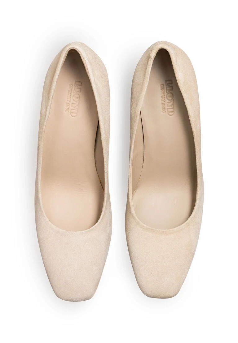 Los zapatos de salón LLOYD, diseñados en piel rugosa beige, ofrecen una agradable comodidad. Estos zapatos de tacón garantizan un look elegante y femenino. Su suela de goma antideslizante amortigua el impacto al caminar, mientras que el cuero de la plantilla interior garantiza una buena regulación térmica. La elegante punta cuadrada y fina crea una silueta estilizada. El tacón de aguja bajo realza el look femenino. La suave parte superior de piel rugosa y la banda elástica garantizan un aspecto original y de alta calidad, además de ser fáciles de poner y quitar. Gracias al forro de piel, estos zapatos son transpirables y cómodos.