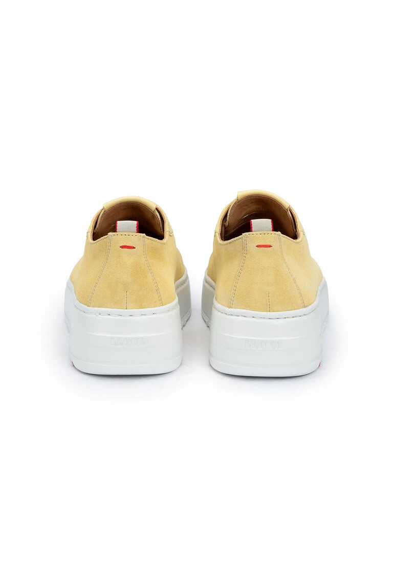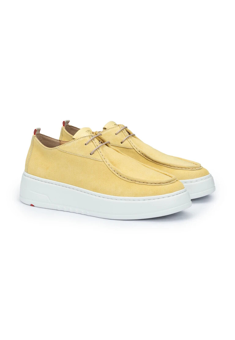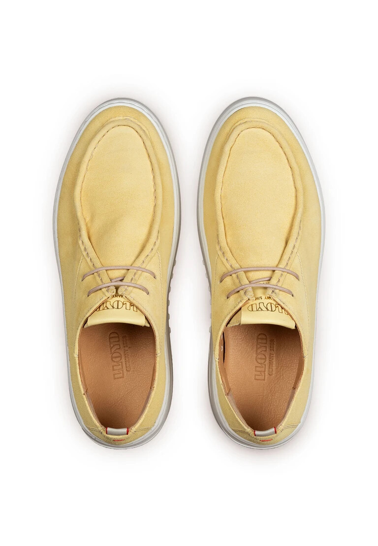 Descubre la LLOYD SNEAKER en amarillo brillante: una pieza que no pasará desapercibida en ningún armario. Esta zapatilla para mujer combina una parte superior de ante de alta calidad con una robusta suela de goma. Los cordones permiten ajustarla individualmente al pie. El interior está forrado con una cómoda mezcla de 60 % cuero y 40 % textil, que proporciona comodidad durante todo el día. La suela de cuero en el interior proporciona mayor comodidad. La zapatilla destaca visualmente por su punta redonda. Ya sea para el tiempo libre o para ocasiones especiales, marcará tendencia con este zapato.